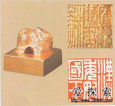 金印印面正方形,边长2.3厘米,印台高约0.9厘米,台上附蛇形钮,通体高约2.2厘米,上面刻有“汉委奴国王”字样,清晰的说明了倭国是汉朝的附属,是中日外交史上最珍贵的文物。