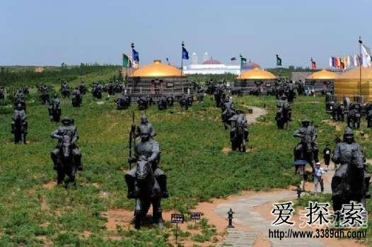 (上图)位于鄂尔多斯草原上的成吉思汗陵