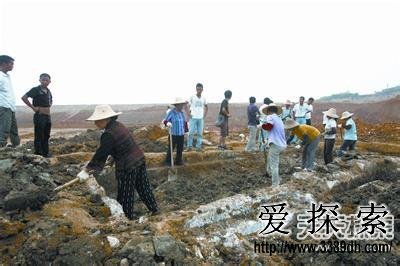 多名村民介绍,本月2日,村里请来挖土机在该空地上挖土,当天下午挖出了几具棺木,这些棺木内还有一些类似古董的东西。这一发现引来村民围观。
