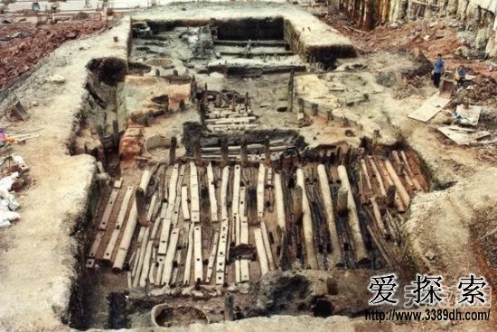 每块足有5平方米大,3600公斤重。动用吊车吊起石板后发现下面有一条神秘的通道,共用750多块红砂岩石块砌成,上盖28块大石板,估计当年建造开挖土方3000立方米,450多吨,可见工程量之浩大。