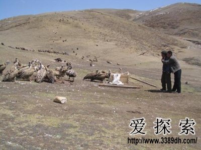 天葬或是解尸典礼是一种西藏的传统习俗。把尸体切成许多碎片散在山顶上,暴露于动物和自然界中————特别是鸟类猛禽。根据一种文献记录,步骤是一将主干切分成几块 二、将肢体砍成碎片三、把所有碎片交给助手,助手就是负责用岩石将尸体上的肉捣烂并将骨头一起碾成糊状的人。四、准备完成后,在秃鹰来食之前加入糟耙(由青稞、茶、奶和耗牛奶油组成)