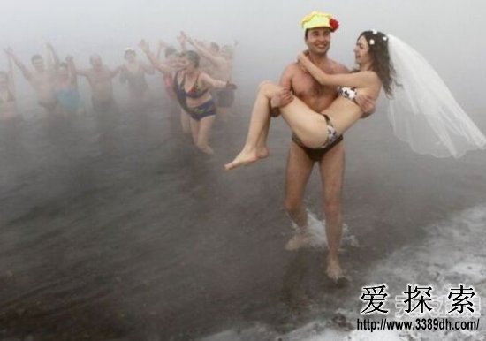 其实,这名游泳健将早已习惯冰泳,然而,这是他的新娘第一次体验这种零下的快乐!看来,为了真爱,情侣们必须要作出一些牺牲!