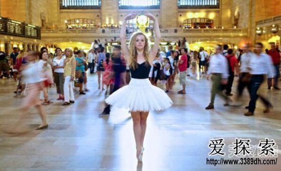当地时间2014年8月8日,美国纽约,古典芭蕾舞女郎现身纽约地铁。