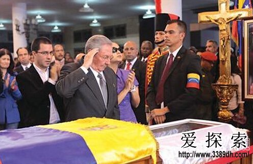 委内瑞拉前总统查韦斯于2013年3月5日去世,据称查韦斯的遗体将做防腐处理后,放入水晶棺材以永久保存。古巴领导人劳尔·卡斯特罗在委内瑞拉首都加拉加斯军事学院向查韦斯的遗体告别时行礼。