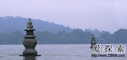 西湖中的这三座小石塔被称为“三潭”,秋节时,在塔中点燃灯烛,灯光、月光以及它们在湖水中倒影交相辉映,是中国古典园林的经典之作。人民币上的图案并非完全写实,摄影师所在角度只能拍到两座石塔。