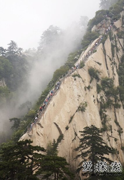 令人害怕的“空中阶梯”是通向华山山顶的,华山海拔高度超过2134米。人们去朝圣的原因很简单,因为在山顶的茶馆据说有一些世界上最好的茶。华山古称“西岳”,是我国著名的五岳之一。图为陕西省渭南市,华山“苍龙岭”景点。