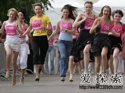 爱美的女性朋友都知道,穿高跟鞋久了是一件多么痛苦的事情更别说穿着它跑步。然而2009年12月,俄罗斯首都莫斯科的一家时尚杂志却举办了一场高跟鞋短跑比赛。比赛规则要求参赛者穿着的鞋跟不能低于9厘米,但实际上,很多参赛者的鞋跟高度都超出标准,最高的竟然达到16厘米。