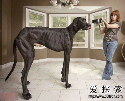 动物世界也有它们的世界纪录,图为2012年吉尼斯世界记录上最高的狗,来自美国密歇根州3岁大的狗狗Zeus,身高112厘米。