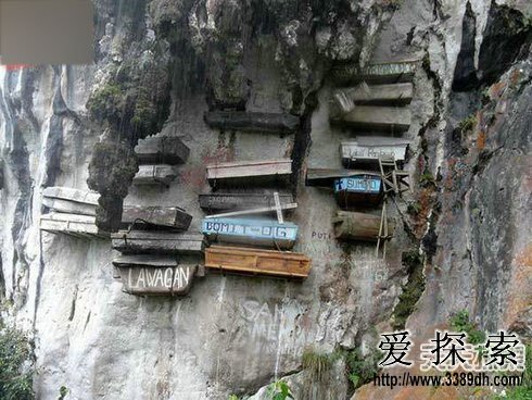 当地的伊格洛族 (Igorot) 有个习俗,他们会将死者的棺材悬吊在崖上,他们认为这样能保存死者的遗体,使他们的精神不死。这样的景象真的很难令人不发抖啊…。