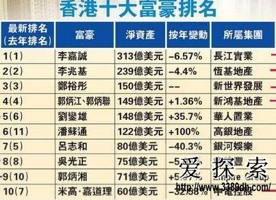 排名第二:李兆基。紧随在后排名第二的,仍然是李兆基,净资产高达239亿美元,其身家较一年前“缩水”约4.4%。