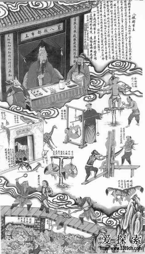 第八殿,都市王黄,四月初一日诞辰,司掌大热大恼大地狱,又名恼闷锅地狱,另设十六小狱。凡在世不孝,使父母翁姑愁闷烦恼者,掷入此狱。再交各小狱加刑,受尽痛苦,解交第十殿,改头换面,永为畜类。