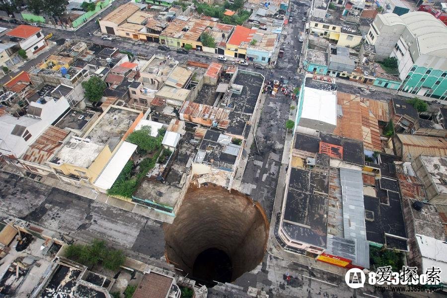 2010年5月31日,濒临加勒比海的中美洲国家危地马拉在发生一桩骇人听闻的怪事:其首都危地马拉城出现一个巨大的深坑,深度达到100米!一幢3层建筑坠入坑中,造成至少造成1人死亡。