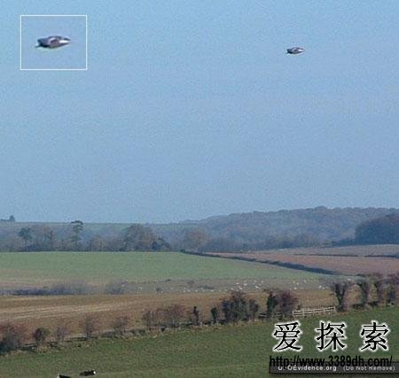 这是两个不同版本的相同照片。照片中的不明飞行物是非常大的椭圆形物体,像是有两个金色翅膀。拍摄者当时正在山谷中拍摄风景,不久便发现数码相机中出现椭圆形的飞行物,看起来像一只鲸鱼。