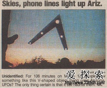 史上最大规模的一次飞碟目击事件是在从菲尼克斯开始的,然后这些光线在两个小时之内穿越了这个城市,多达700人在那个时候看到了这些光线,甚至有些人还录了像。美国军方声称这些光线只是从燃烧的飞机上发射出来的,但是菲尼克斯的居民却不相信这种说法。