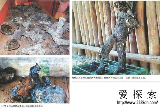 当人们靠近查看时,看到的并不是陨石碎片,而是某种类似于金属的碎片。在这些碎片中,有人还发现了一个身高约30厘米,被烧焦的尸体躺在地上。难道,坠落的不是陨石,而是UFO?