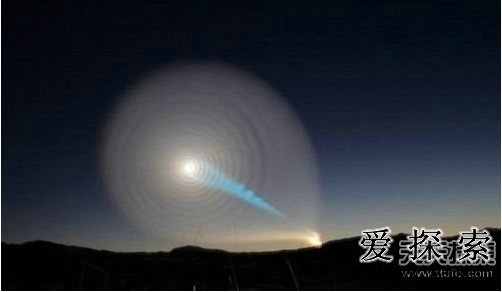 2009年12月,一种壮观的螺旋光线出现于挪威北部上空:中心释放着绿蓝色光束的巨大“螺旋体”,它的出现照亮了整个天空,并产生雨点涟漪效应。观看到这一景象的人们都认为这可能来自外星球的UFO光临地球。从另一个角度观看,它更像天空中出现的“虫洞”。但真实的情况却是俄罗斯军方导弹测试,据俄罗斯国防部称,当时在天空中形成的这一景象是由于此次导弹发射失败形成的奇特光线。