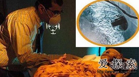 在卢索伊城郊外出土了一具2500年前的木乃伊身上,尽然听到体内有声音而感到大为诧异。开罗一家医院的医生解剖了这具木乃伊,发现能发声的原来是由黑水晶制造的心脏起搏器,此事震惊了世界。但疑点随之也出现了,因为我们地球上只出产白色水晶,从没发现过含有放射性的黑水晶!