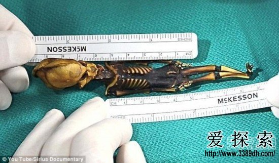 据英国媒体报道,由于是在智利阿塔卡马沙漠发现的,这个小人被称之为“阿塔卡马人”,昵称“阿塔”。自10年前发现以来,围绕“阿塔”真实身份的各种推测就从没有停止过。一些人认为“阿塔”是一名流产的胎儿或者一只猴子,也有人认为是坠落地球的外星人。