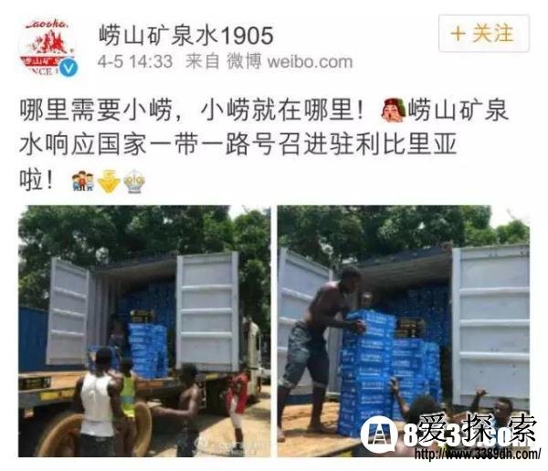 话说4月5日,崂山矿泉水官方微博@崂山矿泉水1905 表示,崂山矿泉水响应国家一带一路的号召,进驻利比里亚了。